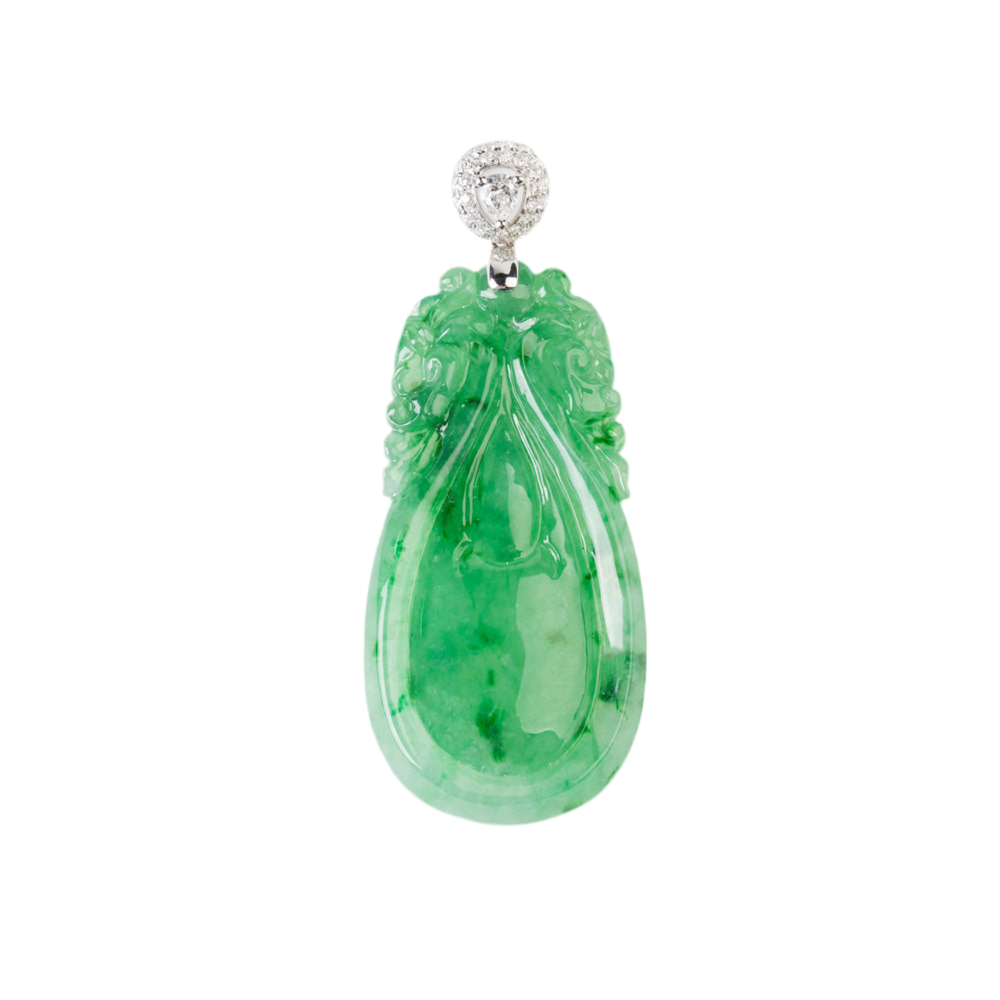 天然翡翠「事事如意」玉镶钻挂坠,18K白金。